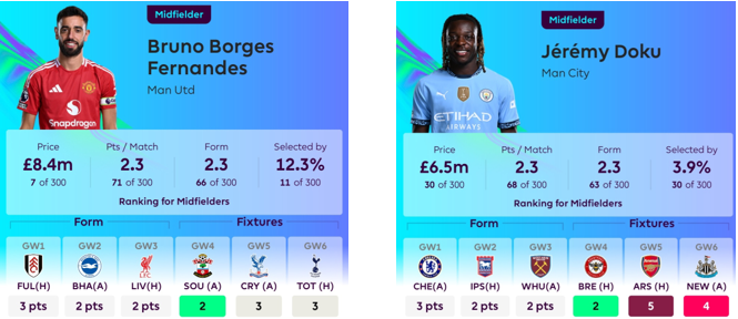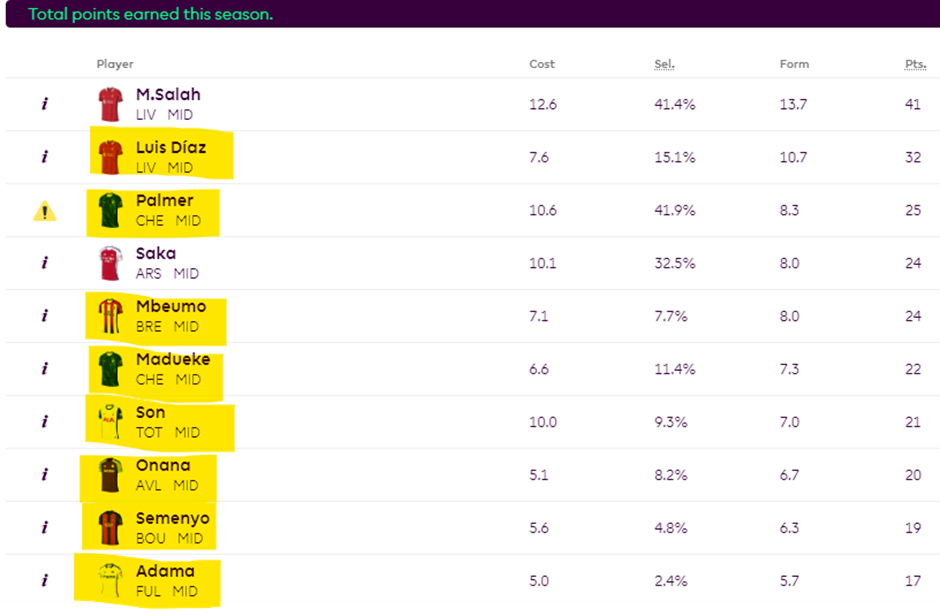 At 7.6 M, Luiz Diaz seems like a bargain, already amassing 32 points and his next 3 fixtures are looking juicy with 2 home games. Mbeumo has always been a reliable FPL pick, however Brentford have some tough games against Man City and Spurs coming up.