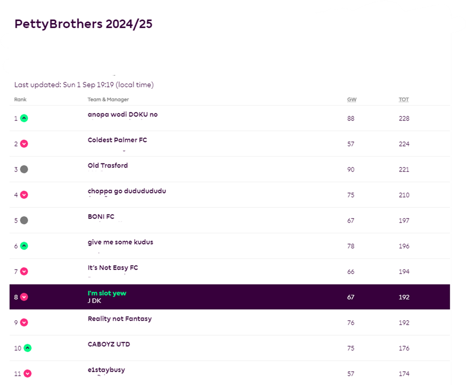 So we get a week off as there is international break- so I’ll keeping an eye on any injuries etc before making decisions for game week 4. Until then see below my current state in the leagues I am involved in …