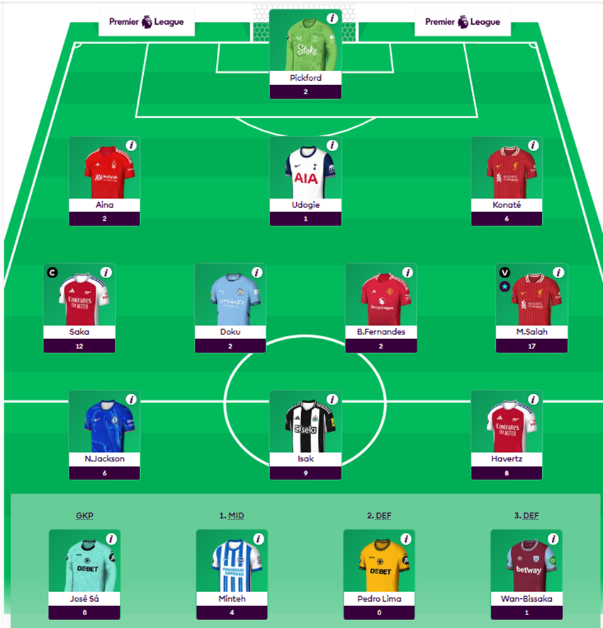 My front 3 in Jackson (6), Isak (9) and Havertz (8) had decent returns, and this soothed the pain of missing out on Haaland.