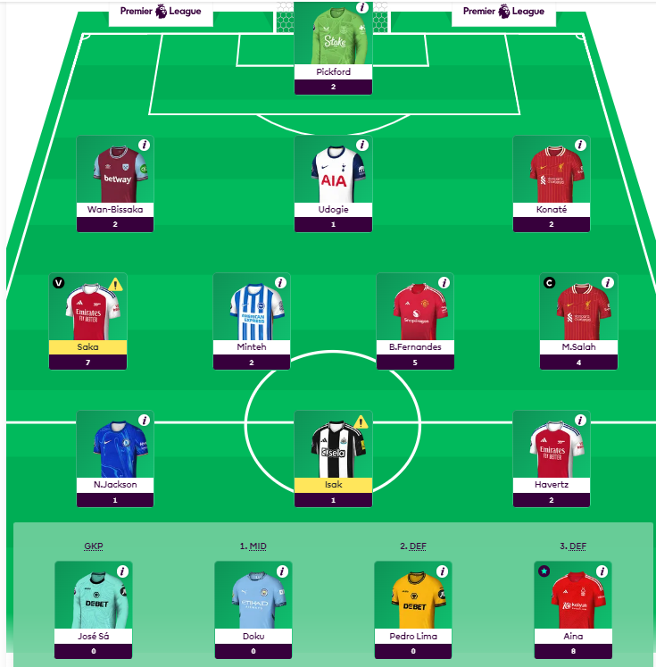 My captain choices have actually been dreadful as you can see above. To top it off, Ola Aina, had an amazing game at Liverpool (gaining a clean sheet and 2 bonus points) and I miss out on a lovely 8 points. The FPL gods are not on my side this season- It’s going to be a long old season.