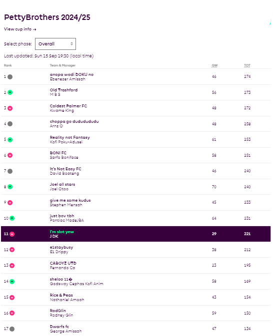 Read arrows galore! I’ve also fallen 53 points behind in the petty brothers league. I need my fortunes to change soon.