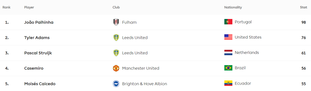 3 players potentially playing in tonights game feature in the top 5 players with most tackles so far this season: